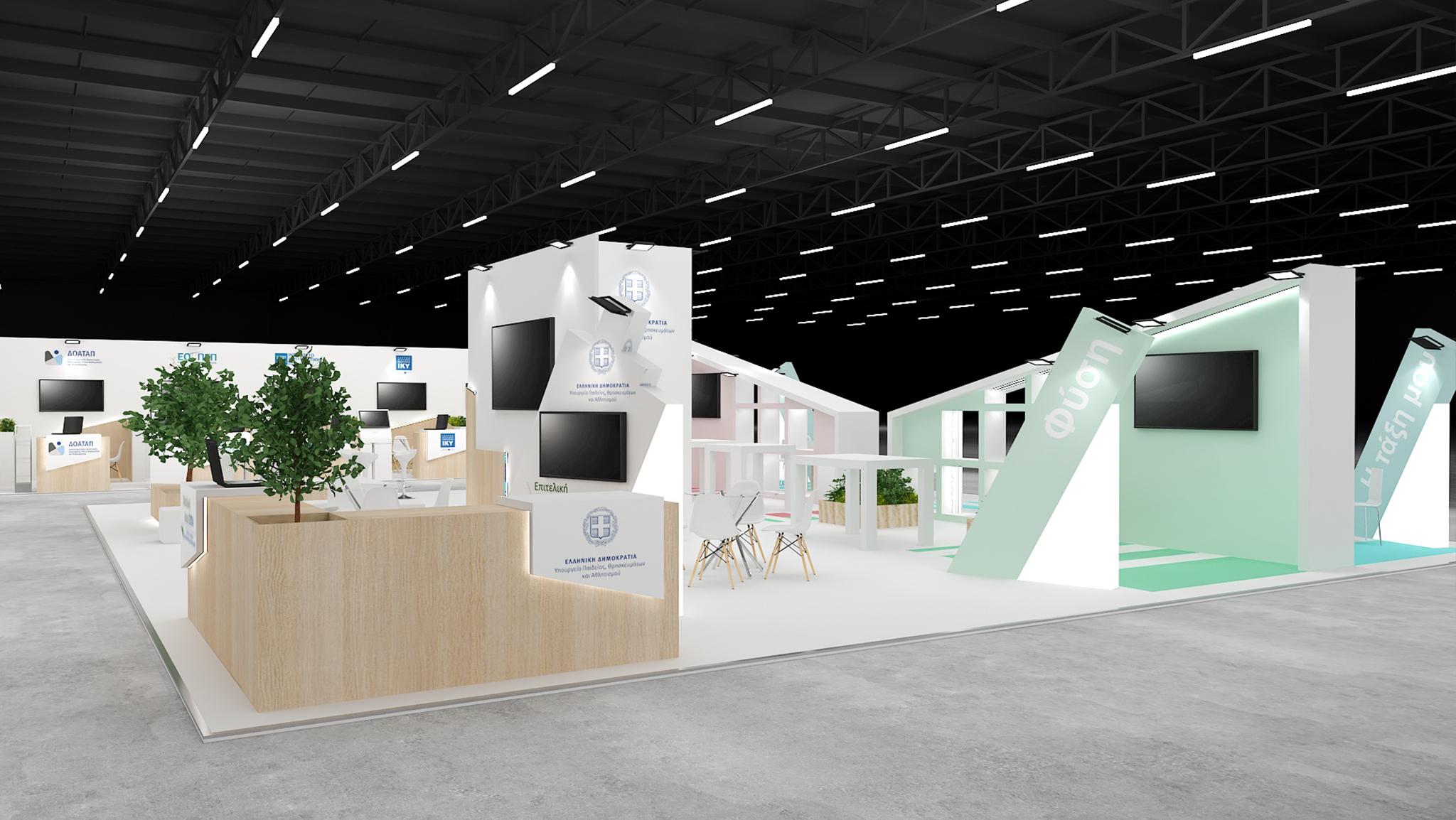 - Πάγκοι παρουσίασης, βάθρα, ledwalls και διαφανοσκόπια